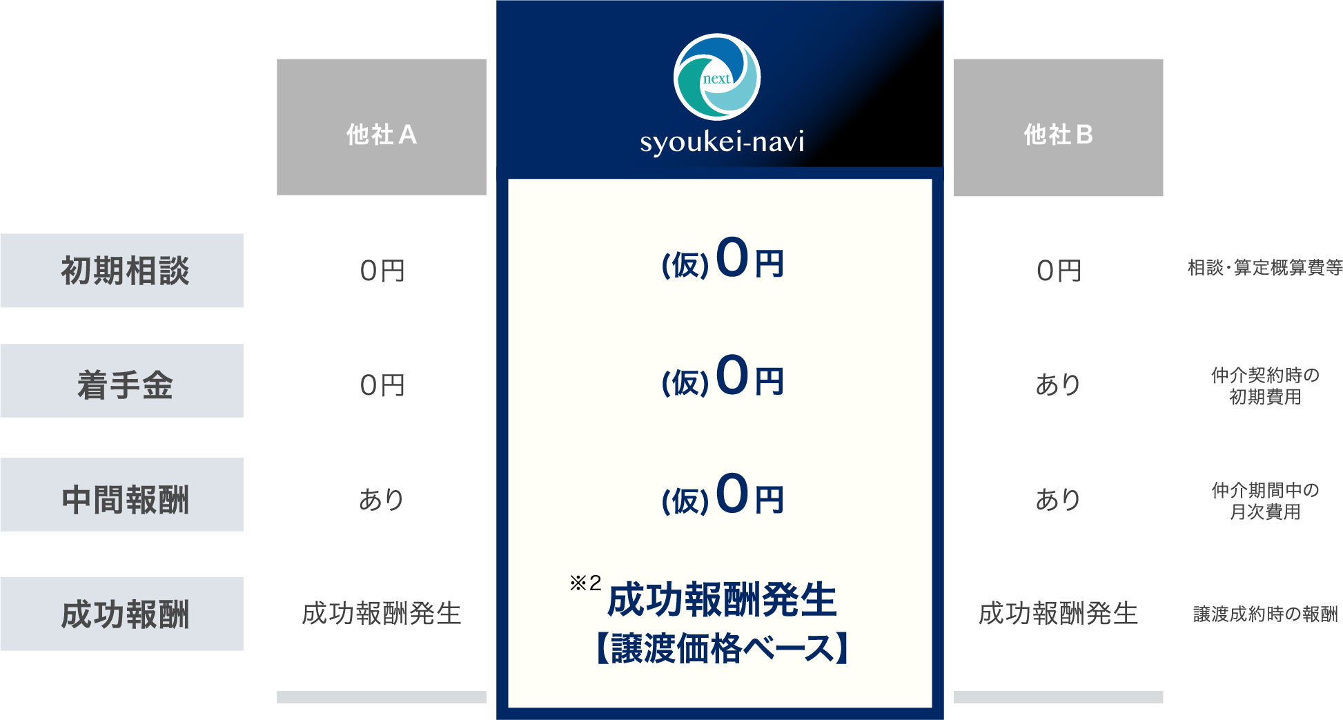 ※1譲渡成約時の報酬は、引き継ぎたい方が譲りたい方に支払った金額を元に算出をしています。